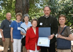 Richard Tibbetts was awarded the California Council of Historical Societies Preservation Award. His outstanding work was recognized statewide and we are proud and applaud his efforts. 6/29/09 Canoga's own history teacher, Mr. Tibbetts, is an alumnus, a history teacher, and the founder of the Canoga Park High School Museum and Alumni Redwood Grove Project. In the past five years, Mr. Tibbetts has been responsible for the restoration of the school's Depression Era murals, the resurfacing of the Goldstar Graduate Memorial Wall, the founding of the museum, and the preservation of the historic redwood grove. His efforts have caused a resurgence of interest and support for Canoga Park High School's history, grounds, buildings, and alumni community. The award was created to recognize outstanding accomplishments of individuals in the restoration and/or preservation of historic landmarks, monuments, documents, or other memorabilia. Mr. Tibbetts has exceeded the requirements in all areas. His tireless efforts have truly transformed our campus. Mr. Tibbetts was nominated by members of the Canoga-Owensmouth Historical Society (COHS), and they were on hand this weekend in Martinez, California to see him receive the award. |