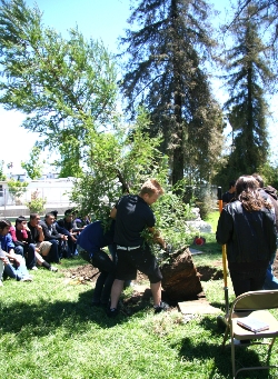 A Canoga Park High School tradition was observed again last Friday as students, staff, and alumni planted two more Coastal Redwood trees in the old historic grove. Two years ago, Canoga reinstituted the old school tradition of planting trees on Arbor Day. National Arbor Day is observed every year on the last Friday of April, and this year it fell on the 30th. In the spirit of the day, two more Coastal Redwoods were planted north of the football field in our attempt to revitalize Canoga's historic Redwood Grove. Canoga Park High School is very thankful to Nancy Bergquist of Green Thumb Nursery for her generous donation of the trees. In the last two years Nancy has donated five Redwoods to the old Grove that she remembers fondly from her high school days at Canoga. Nancy is a proud Hunter from the class of 1964! Over 100 students were present for the event, including the marching band. Our honored guests were Nancy Bergquist, and Betty Allen (class of 1938). Betty was in the 10th grade at Canoga when the Redwood Grove was first planted in 1936! One tree was planted in memory of Dale Bergquist (Founder of Green Thumb Nursery and Nancy's Father) who passed away last January, and the other was planted in honor of Betty Allen who will turn 90 on May 9th! We have done much to help the Old Grove over the last 5 years, and the two newest redwoods will help us to bring the grove back to its former grandeur. Thank you Mr. McGee, Mr. Otsap, Ms. Olenick, Mr. Artinian, Mr. Morton, Mr. Moreno, Mr. Tiefen, and Ms. Hamashita for participating and bringing your students. Thank you Canoga students for carrying on a great tradition! And a very special thanks to Betty, Nancy and Green Thumb Nursery! To see picture of the event, please click here. To learn more about our Save the Redwoods project, click on this link: OLD GROVE |